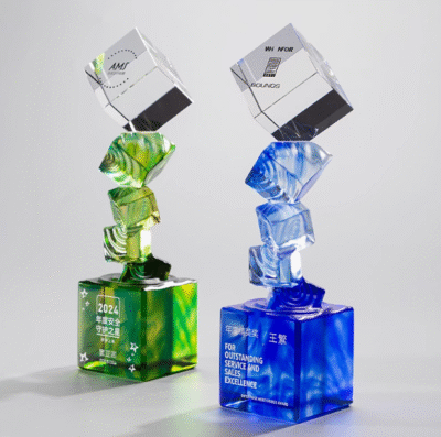 Creative Engraved Carving Cube Crystal Glass Trophy Souvenir Award