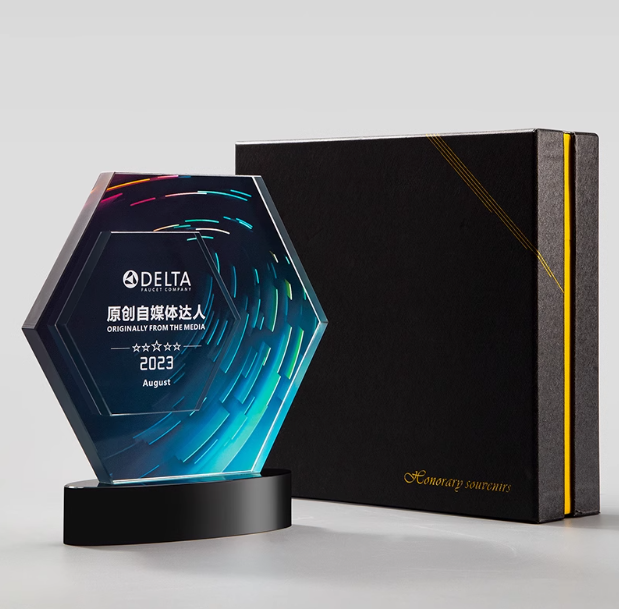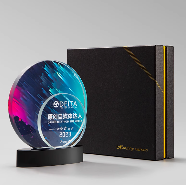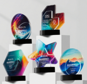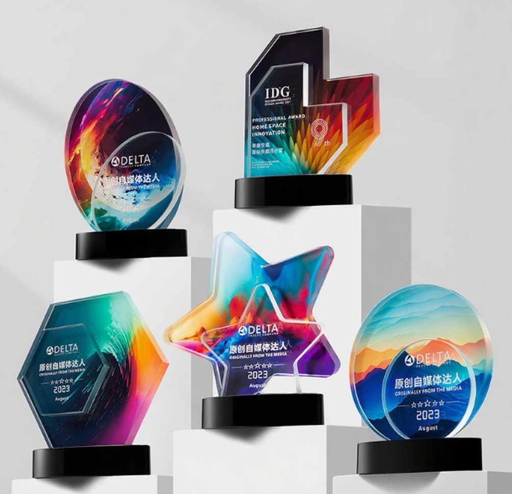 Custom Colorful Multi-Shaped Trophies for Media Innovation Recognition
