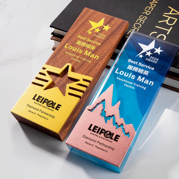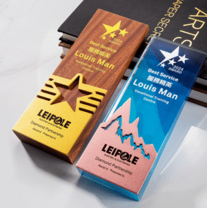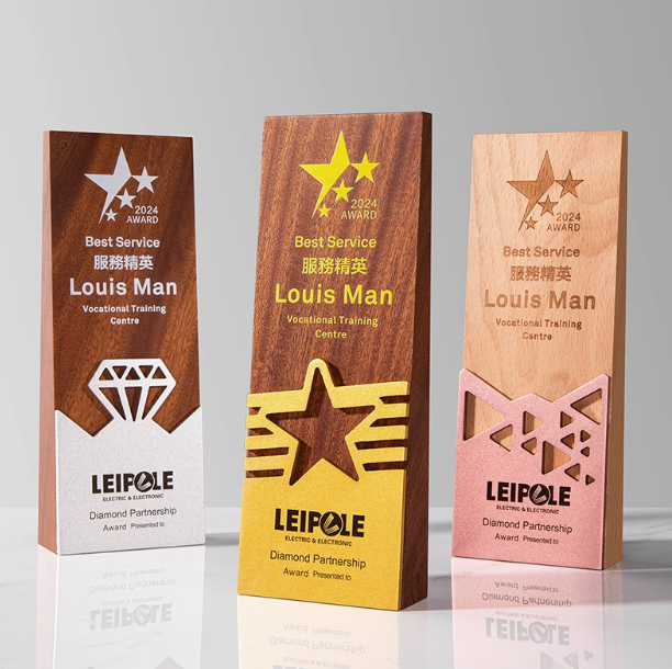Customized Rectangle Wooden Trophy Award with Gold Silver Bronze Plate