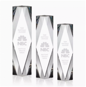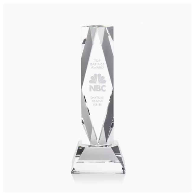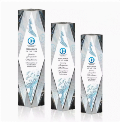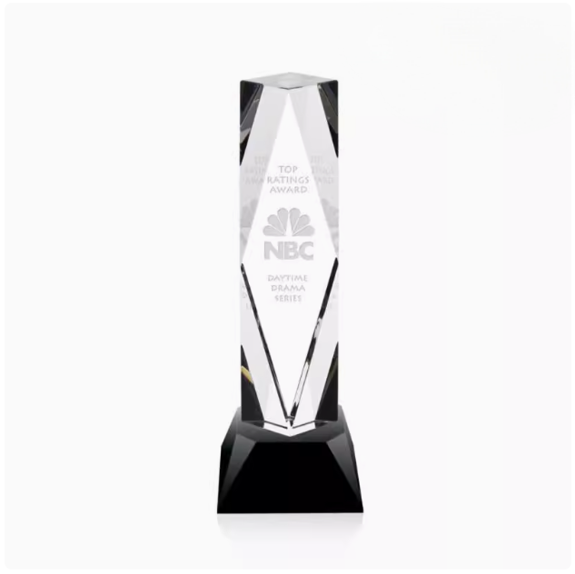 Geometric Shape Transparent Crystal Trophy with Black Base for Award Ceremony