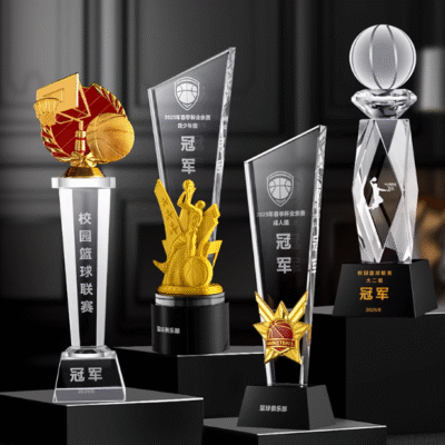 Honor of Sports Crystal Glass Base Basketball Champion Awards Trophy