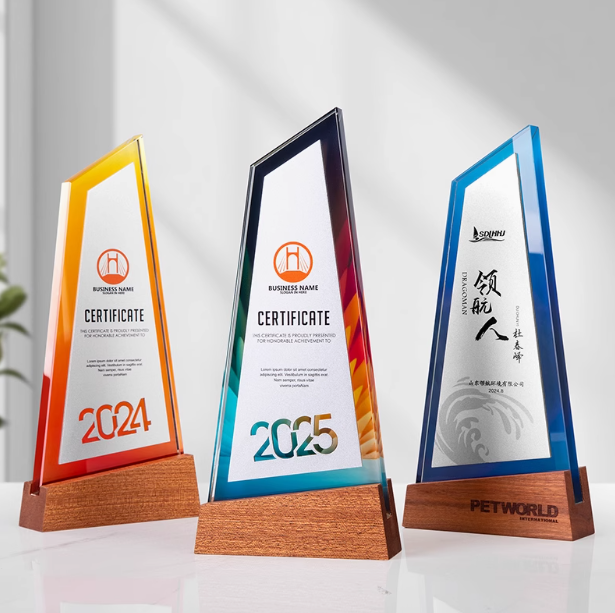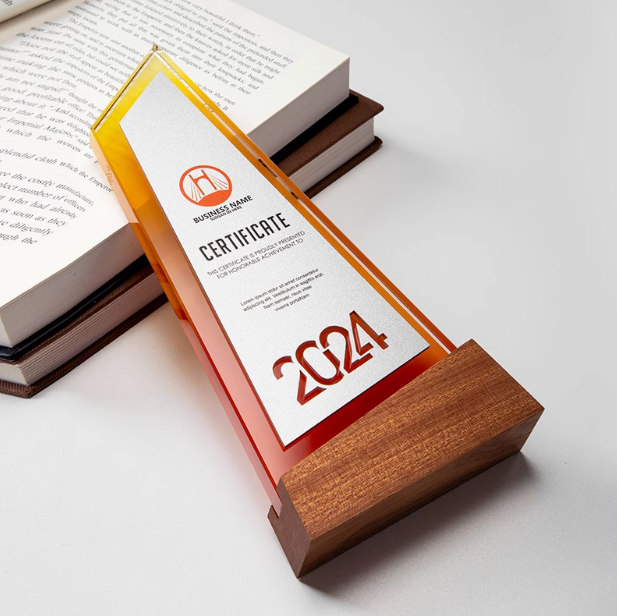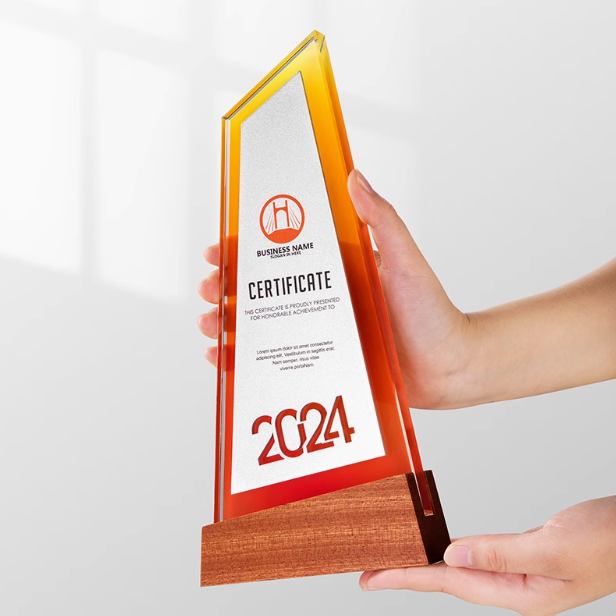 Personalized High End Irregular Shape Wooden Base Crystal Award Trophy