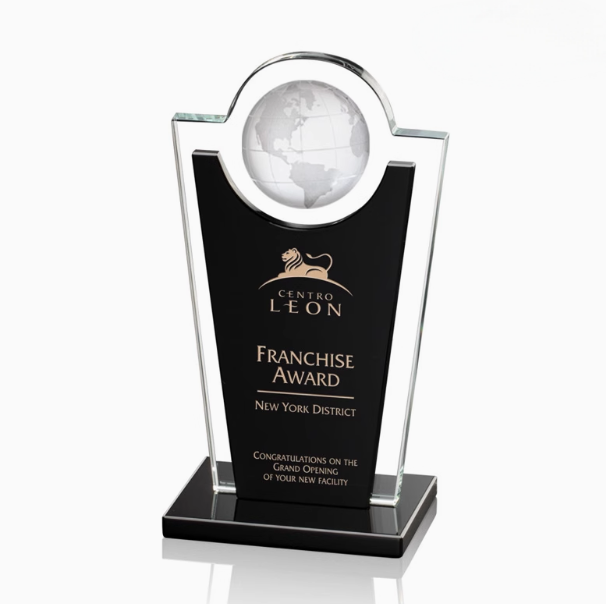 Personalized Laser Engraving Black Plaque Crystal Globe Award Trophy
