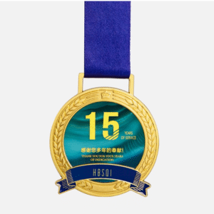 Recognition Medal with Blue Ribbon and Wheat for Employee Appreciation