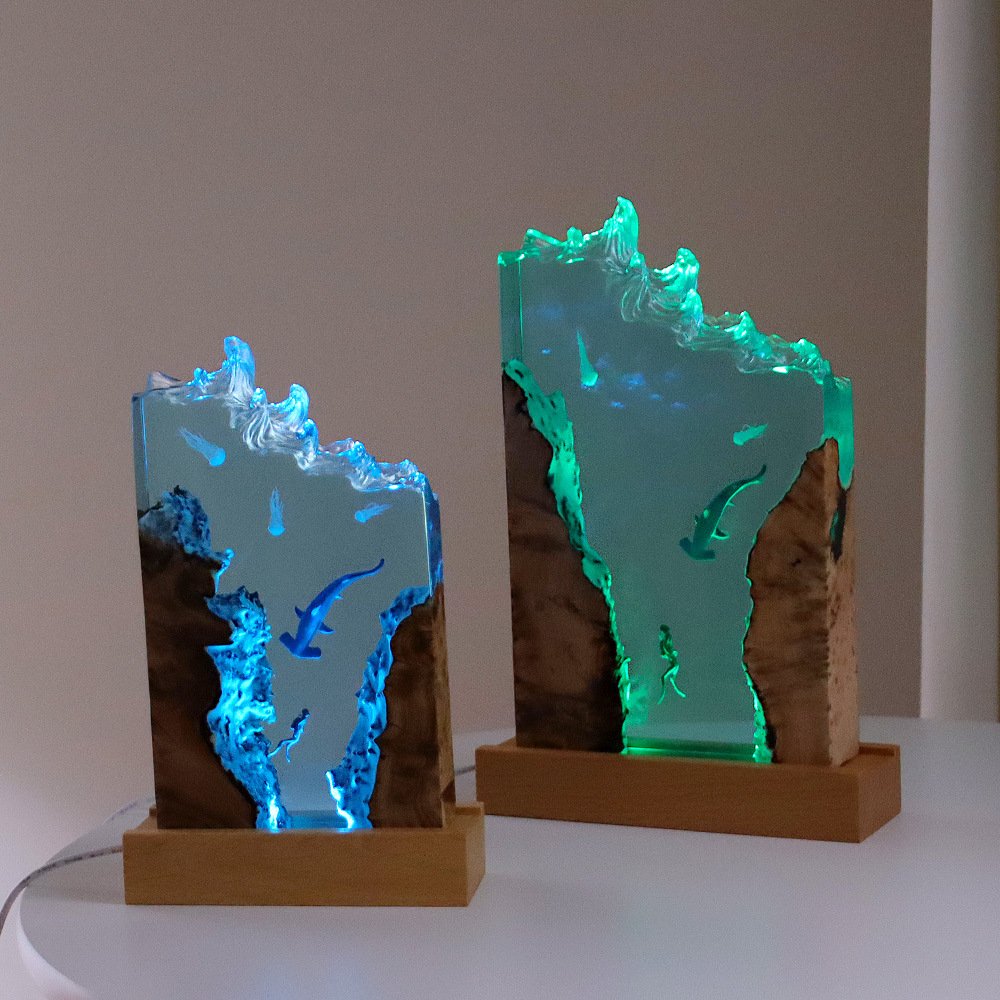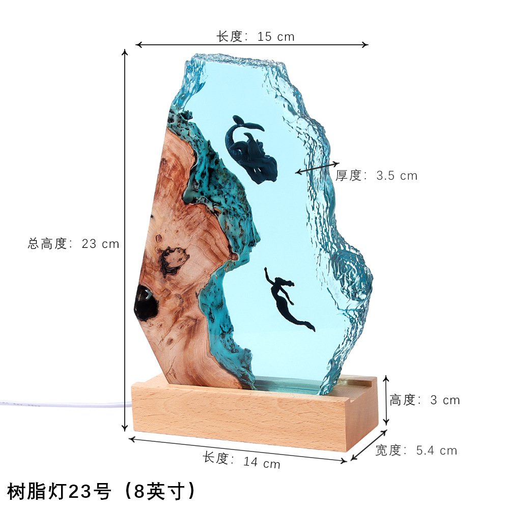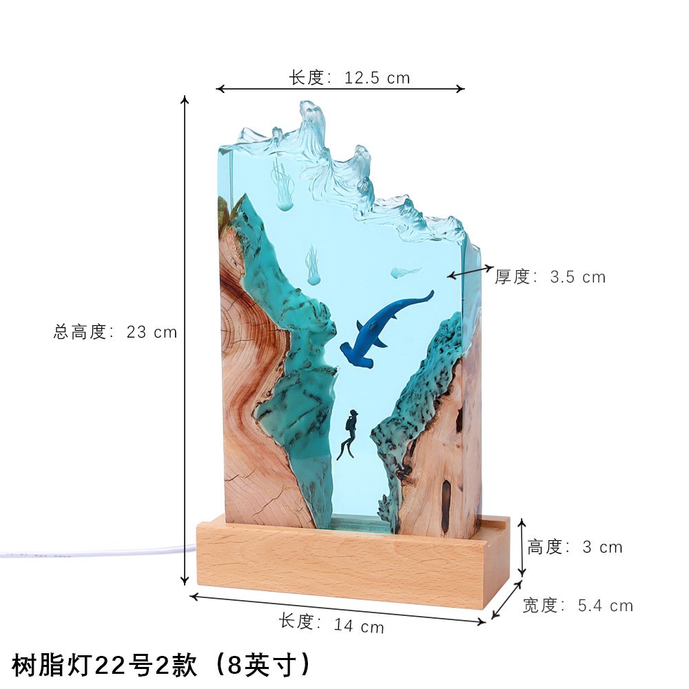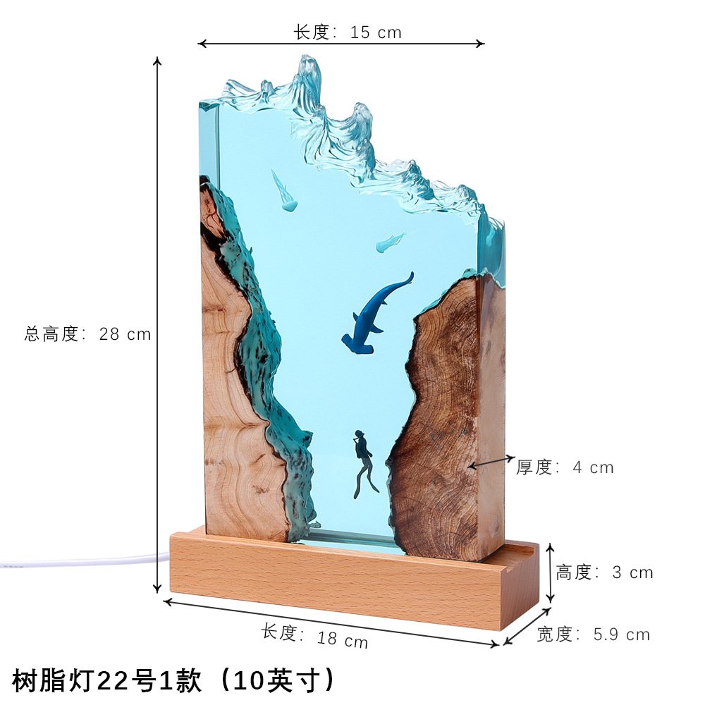 Diver Night Light Diving Deep Sea Exploration Wooden Epoxy Resin Lamp Ornaments